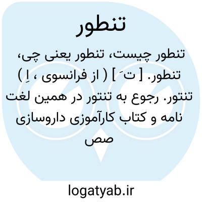 تنطور. [ ت َ ] ( از فرانسوی، اِ ) تنتور. رجوع به تنتور در همین لغت نامه و کتاب کارآموزی داروسازی صص 248-250 و درمان شناسی ج 1 شود.