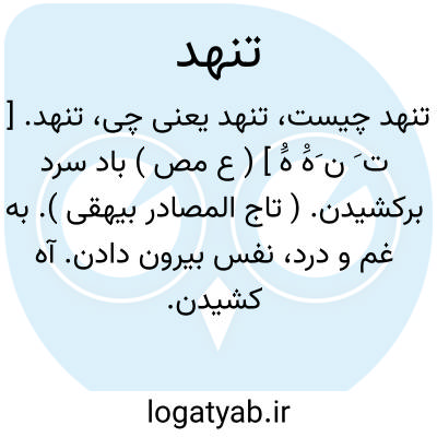 تنهد. [ ت َ ن َهَْ هَُ ] ( ع مص ) باد سرد برکشیدن. ( تاج المصادر بیهقی ). به غم و درد، نفس بیرون دادن. آه کشیدن. ( از اقرب الموارد ).