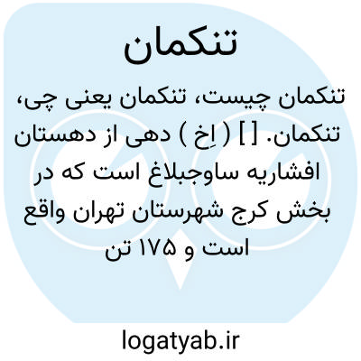 تنکمان. [ ] ( اِخ ) دهی از دهستان افشاریه ساوجبلاغ است که در بخش کرج شهرستان تهران واقع است و 175 تن سکنه دارد. ( از فرهنگ جغرافیایی ایران ج 1 ).