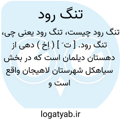 تنگ رود. [ ت َ ] ( اِخ ) دهی از دهستان دیلمان است که در بخش سیاهکل شهرستان لاهیجان واقع است و 136 تن سکنه دارد. ( از فرهنگ جغرافیایی ایران ج 2 ).