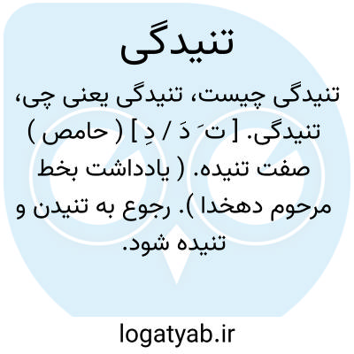 تنیدگی. [ ت َ دَ / دِ ] ( حامص ) صفت تنیده. ( یادداشت بخط مرحوم دهخدا ). رجوع به تنیدن و تنیده شود.