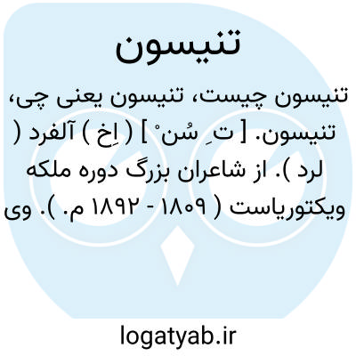 تنیسون. [ ت ِ سُن ْ ] ( اِخ ) آلفرد ( لرد ). از شاعران بزرگ دوره ملکه ویکتوریاست ( 1809 - 1892 م. ). وی در سامرزبای متولد شد و گوینده منظومه های شاه و انوخ آردن است. ( از لاروس ).