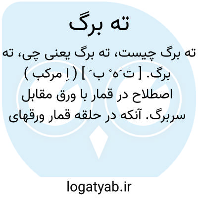 ته برگ. [ ت َه ْ ب َ ] ( اِ مرکب ) اصطلاح در قمار با ورق مقابل سربرگ. آنکه در حلقه قمار ورقهای آخر، او را باشد.