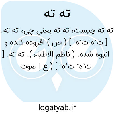 ته ته. [ ت ُه ْ ت ُه ْ ] ( ع اِ صوت ) کلمه ای است که شتران را بدان زجر کنند و سگان را خوانند. || حکایت لکنت. ( منتهی الارب ) ( ناظم الاطباء ) ( آنندراج ).