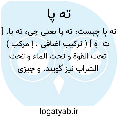 ته پا. [ ت َ هَِ ] ( ترکیب اضافی، اِ مرکب ) تحت القوة و تحت الماء و تحت الشراب نیز گویند. و چیزی اندک که بدان ناشتا بشکنند. ( آنندراج ):