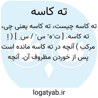 ته کاسه. [ ت َه ْ س َ / س ِ ] ( اِ مرکب ) آنچه در ته کاسه مانده است پس از خوردن مظروف آن. آنچه از بقیه طعام یا شراب که در ته کاسه مانده. ( یادداشت بخط مرحوم دهخدا ). رجوع به ته و دیگر ترکیبهای آن شود.