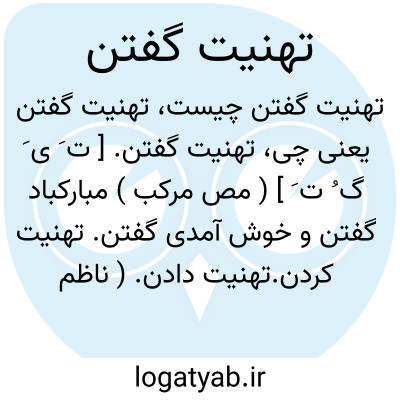 تهنیت گفتن. [ ت َ ی َ گ ُ ت َ ] ( مص مرکب ) مبارکباد گفتن و خوش آمدی گفتن. تهنیت کردن.تهنیت دادن. ( ناظم الاطباء ): خرچنگ تهنیت حیات باقی ایشان [ ماهیان ] بگفت. ( کلیله و دمنه ).