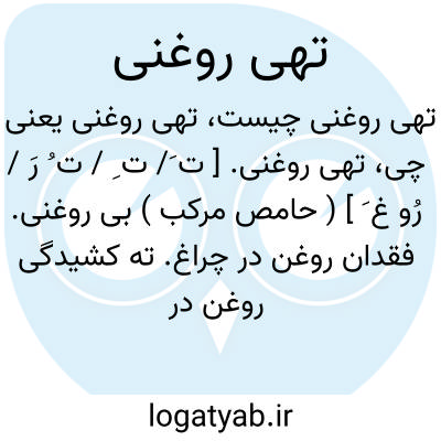 تهی روغنی. [ ت َ/ ت ِ / ت ُ رَ / رُو غ َ ] ( حامص مرکب ) بی روغنی. فقدان روغن در چراغ. ته کشیدگی روغن در چراغ: