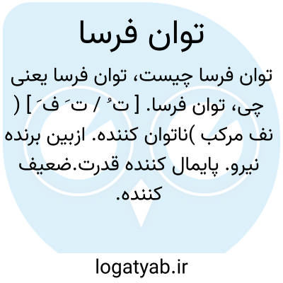 توان فرسا. [ ت ُ / ت َ ف َ ] ( نف مرکب )ناتوان کننده. ازبین برنده نیرو. پایمال کننده قدرت.ضعیف کننده. رجوع به توان و دیگر ترکیبهای آن شود.