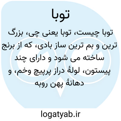 از اعضای خانوادۀ سازهای برنجی لبی ـ زبانه ای دریچه دار با قطر لولۀ مخروطی شکل. آوایی عمیق و ملایم دارد که در حدود ۱۸۳۰ به مثابۀ یکی از اعضای باس قسمت سازهای برنجی ارکستر و ارکستر برنجی ارائه شد. توبا نسبت به زیرایی (زیروبم) و اندازه بزرگ خود به طرز حیرت انگیزی سریع الانتقال و ظریف است، و قابلیت های آن را برلیوز، راول، و وون ویلیامز نشان داده اند.