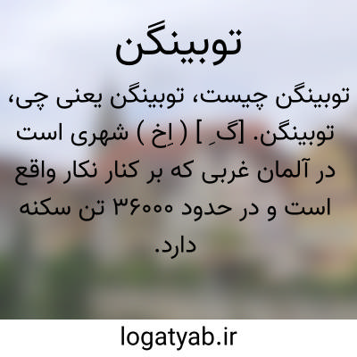 توبینگن. [گ ِ ] ( اِخ ) شهری است در آلمان غربی که بر کنار نکار واقع است و در حدود 36000 تن سکنه دارد. دانشگاه معروف آن در سال 1477 م. تأسیس یافته است. ( از لاروس ). و رجوع به قاموس الاعلام ترکی ذیل «توبینکه » شود.