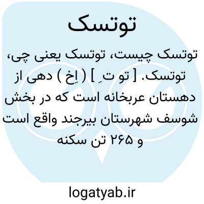توتسک. [ تو ت ِ ] ( اِخ ) دهی از دهستان عربخانه است که در بخش شوسف شهرستان بیرجند واقع است و 265 تن سکنه دارد. ( از فرهنگ جغرافیایی ایران ج 9 ).