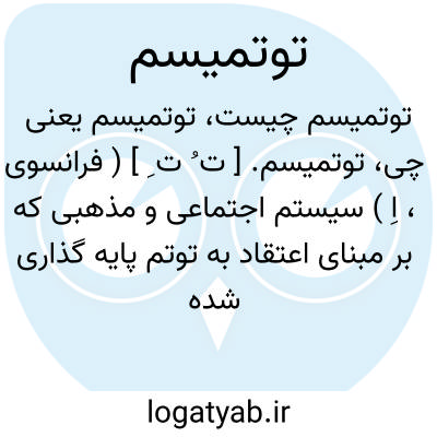توتمیسم. [ ت ُ ت ِ ] ( فرانسوی، اِ ) سیستم اجتماعی و مذهبی که بر مبنای اعتقاد به توتم پایه گذاری شده بود. رجوع به توتم شود.