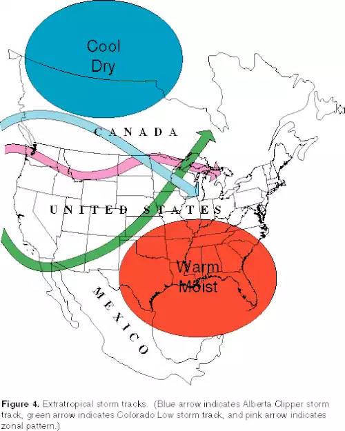 • توده عرض میانی: از شمال غرب وارد ایران می شود. ماهیت مرطوب دارد و فعالیت آن در زمستان است.