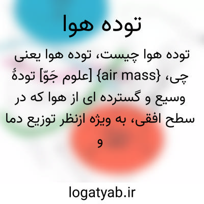 {air mass} [علوم جَوّ] تودۀ وسیع و گسترده ای از هوا که در سطح افقی، به ویژه ازنظر توزیع دما و رطوبت، تقریباً همگن باشد