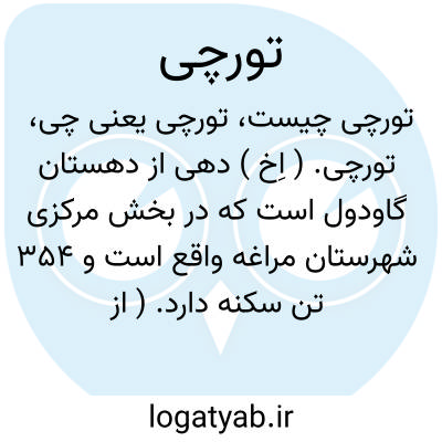 تورچی. ( اِخ ) دهی از دهستان گاودول است که در بخش مرکزی شهرستان مراغه واقع است و 354 تن سکنه دارد. ( از فرهنگ جغرافیایی ایران ج 4 ).