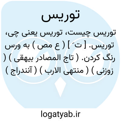 توریس. [ ت َ ] ( ع مص ) به ورس رنگ کردن. ( تاج المصادر بیهقی ) ( زوزنی ) ( منتهی الارب ) ( آنندراج ) ( ناظم الاطباء )( از اقرب الموارد ). و آن ( ورس ) نباتی باشد که به زعفران ماند. ( تاج المصادر بیهقی ). رجوع به ورس شود.
