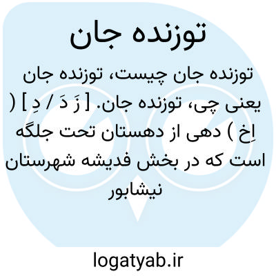 توزنده جان. [ زَ دَ / دِ ] ( اِخ ) دهی از دهستان تحت جلگه است که در بخش فدیشه شهرستان نیشابور واقع است و 593 تن سکنه دارد. ( از فرهنگ جغرافیایی ایران ج 9 ).