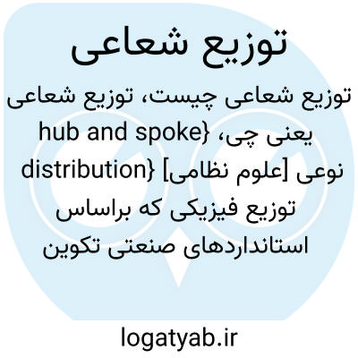 {hub and spoke distribution} [علوم نظامی] نوعی توزیع فیزیکی که براساس استانداردهای صنعتی تکوین یافته است و در جهت بهینه سازی مدیریت تخلیه و توزیع بار صحنۀ عملیات به منظور افزایش کارایی ترابری و کاهش زمان سفارش محموله به کار می رود