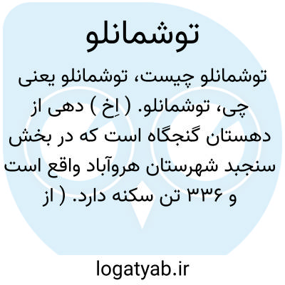 توشمانلو. ( اِخ ) دهی از دهستان گنجگاه است که در بخش سنجبد شهرستان هروآباد واقع است و 336 تن سکنه دارد. ( از فرهنگ جغرافیایی ایران ج 4 ).