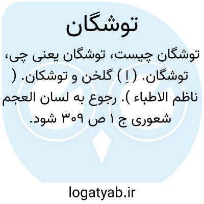 توشگان. ( اِ ) گلخن و توشکان. ( ناظم الاطباء ). رجوع به لسان العجم شعوری ج 1 ص 309 شود.