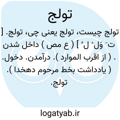تولج. [ ت َ وَل ْ ل ُ ] ( ع مص ) داخل شدن. ( از اقرب الموارد ). درآمدن. دخول. ( یادداشت بخط مرحوم دهخدا ).