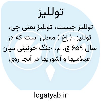 توللیز. ( اِخ ) محلی است که در سال 659 ق. م. جنگ خونینی میان عیلامیها و آشوریها در آنجا روی داد. رجوع به تاریخ ایران باستان ج 1 ص 137 شود.