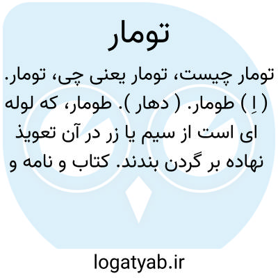 تومار. ( اِ ) طومار. ( دهار ). طومار، که لوله ای است از سیم یا زر در آن تعویذ نهاده بر گردن بندند. کتاب و نامه و جریده و دفتر و فهرست و دفتر اعمال شخص در روز قیامت. ( ناظم الاطباء ). رجوع به طومار شود.