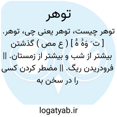توهر. [ ت َ وَهَْ هَُ ] ( ع مص ) گذشتن بیشتر از شب و بیشتر از زمستان. || فرودریدن ریگ. || مضطر کردن کسی را در سخن به چیزی که متحیر بماند در آن. ( منتهی الارب ) ( آنندراج ) ( ناظم الاطباء ) ( از اقرب الموارد ).
