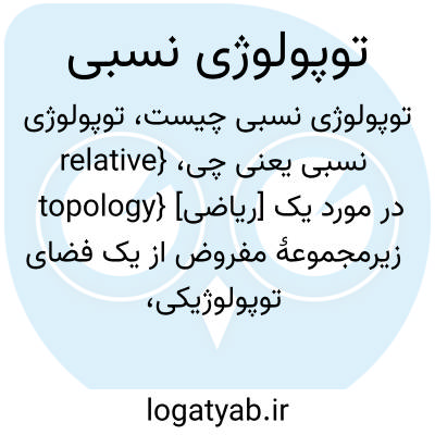 {relative topology} [ریاضی] در مورد یک زیرمجموعۀ مفروض از یک فضای توپولوژیکی، توپولوژی حاصل از اشتراک همۀ زیرمجموعه های بازِ فضا با آن زیرمجموعه