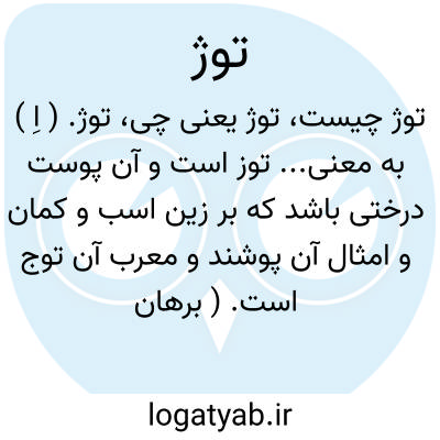 توژ. ( اِ ) به معنی... توز است و آن پوست درختی باشد که بر زین اسب و کمان و امثال آن پوشند و معرب آن توج است. ( برهان ) ( آنندراج ) ( ناظم الاطباء ) ( از فرهنگ جهانگیری ). رجوع به توج و توز شود.