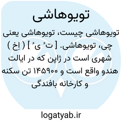 لغت نامه دهخدا تویوهاشی. [ ت ُ ی ُ ] ( اِخ ) شهری است در ژاپن که در ایالت هندو واقع است و 145900 تن سکنه و کارخانه بافندگی دارد. ( از لاروس ).