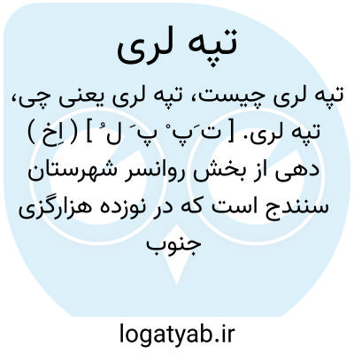 تپه لری. [ ت َپ ْ پ َ ل ُ ] ( اِخ ) دهی از بخش روانسر شهرستان سنندج است که در نوزده هزارگزی جنوب خاوری روانسر و یکهزار گزی باختر راه اتومبیل رو کرمانشاه به روانسر واقع است، دشتی سردسیر است و 169 تن سکنه دارد. آب آن از رودخانه قره سو و محصول آنجا غلات و صیفی است و شغل اهالی زراعت است. راه اتومبیل رو دارد. ( از فرهنگ جغرافیائی ایران ج 5 ).