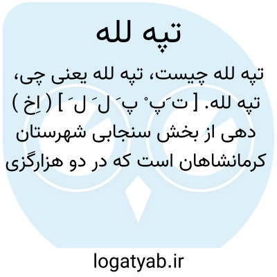 تپه لله. [ ت َپ ْ پ َ ل َ ل َ ] ( اِخ ) دهی از بخش سنجابی شهرستان کرمانشاهان است که در دو هزارگزی جنوب خاوری کوزران و کنار راه فرعی کوزران به چهار زبر واقع است. دشتی سردسیر است و 180 تن سکنه دارد. آب آن از چاه و محصول آنجا غلات و حبوبات دیم و لبنیات است و شغل اهالی زراعت و گله داری است. راه مالرو دارد و در تابستان اتومبیل میتوان برد ودر زمستان اکثر سکنه آنجا به گرمسیر حدود مرز ایران و عراق میروند. ( از فرهنگ جغرافیائی ایران ج 5 ).