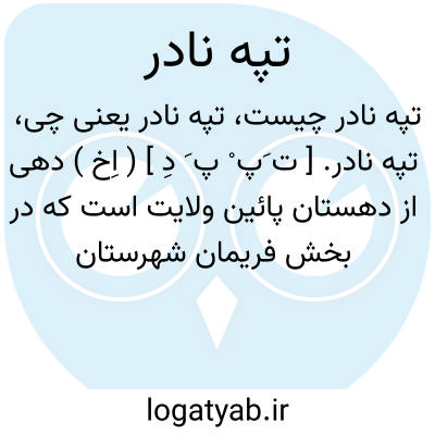 تپه نادر. [ ت َپ ْ پ َ دِ ] ( اِخ ) دهی از دهستان پائین ولایت است که در بخش فریمان شهرستان مشهد و در شصت و چهار هزارگزی خاوری فریمان و چهار هزارگزی باختر راه مالرو عمومی شاهین گرماب به خارزار واقع است کوهستانی و معتدل است و111 تن سکنه دارد. آب آن از قنات و محصول آن غلات و بنشن و شغل اهالی زراعت و مالداری و قالیچه بافی است.راه مالرو دارد. ( از فرهنگ جغرافیایی ایران ج 9 ).