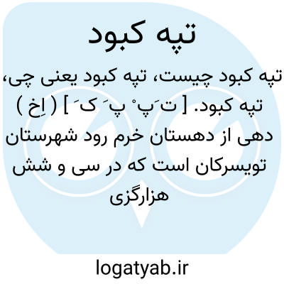 تپه کبود. [ ت َپ ْ پ َ ک َ ] ( اِخ ) دهی از دهستان خرم رود شهرستان تویسرکان است که در سی و شش هزارگزی باختر تویسرکان و چهارهزارگزی شمال راه شوسه تویسرکان به کرمانشاه واقع است دشتی سردسیر است و 93 تن سکنه دارد. آب آن از قنات و رودخانه خرم رود و قره چای است و محصول آنجا غلات و حبوبات و صیفی و لبنیات است و شغل اهالی زراعت و گله داری است و صنایع دستی قالی بافی است. راه مالرو دارد و تابستان از ولاشجرد اتومبیل میتوان برد. ( از فرهنگ جغرافیایی ایران ج 5 ).