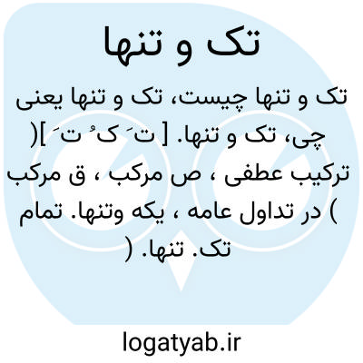 تک و تنها. [ ت َ ک ُ ت َ ]( ترکیب عطفی، ص مرکب، ق مرکب ) در تداول عامه، یکه وتنها. تمام تک. تنها. ( یادداشت بخط مرحوم دهخدا ).