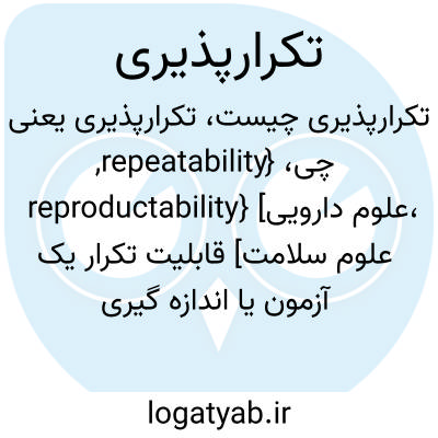 {repeatability, reproductability} [علوم دارویی، علوم سلامت] قابلیت تکرار یک آزمون یا اندازه گیری چنانچه بتوان همواره نتیجه ای مشابه یا نزدیک به نتایج قبلی به دست آورد