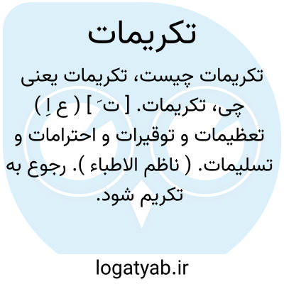 تکریمات. [ ت َ ] ( ع اِ ) تعظیمات و توقیرات و احترامات و تسلیمات. ( ناظم الاطباء ). رجوع به تکریم شود.