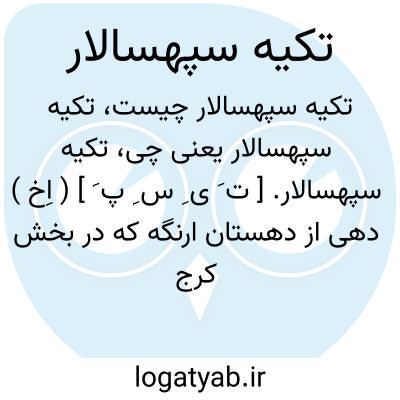 تکیه سپهسالار. [ ت َ ی ِ س ِ پ َ ] ( اِخ ) دهی از دهستان ارنگه که در بخش کرج شهرستان تهران واقع است و در حدود 390 تن سکنه دارد. ( از فرهنگ جغرافیایی ایران ج 1 ).