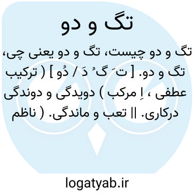 تگ و دو. [ ت َ گ ُ دَ / دُو ] ( ترکیب عطفی، اِ مرکب ) دویدگی و دوندگی درکاری. || تعب و ماندگی. ( ناظم الاطباء ).