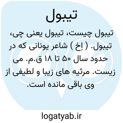 تیبول. ( اِخ ) شاعر یونانی که در حدود سال 50 تا 18 ق.م. می زیست. مرثیه های زیبا و لطیفی از وی باقی مانده است. ( از لاروس ). رجوع به احوال و اشعار رودکی ج 1 ص 154 و قاموس الاعلام ترکی و فرهنگ فارسی معین شود.