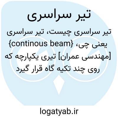 {continous beam} [مهندسی عمران] تیری یکپارچه که روی چند تکیه گاه قرار گیرد