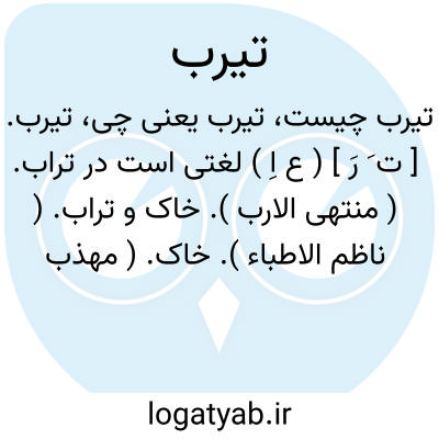 تیرب. [ ت َ رَ ] ( ع اِ ) لغتی است در تراب. ( منتهی الارب ). خاک و تراب. ( ناظم الاطباء ). خاک. ( مهذب الاسماء ).