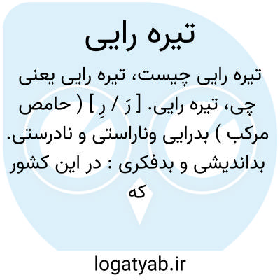 تیره رایی. [ رَ / رِ ] ( حامص مرکب ) بدرایی وناراستی و نادرستی. بداندیشی و بدفکری: