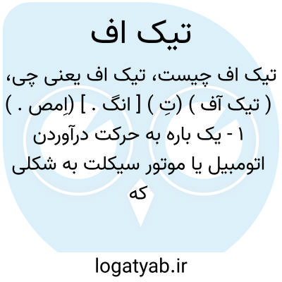 ( تیک آف ) (تِ ) [ انگ. ] (اِمص. ) ۱ - یک باره به حرکت درآوردن اتومبیل یا موتور سیکلت به شکلی که چرخ های آن از زمین اندکی فاصله بگیرد. ۲ - از زمین برخاستن یا بلند کردن هواپیما. ۳ - پریدن یا بلند شدن از تختة شیرجه یا تختة پرش.