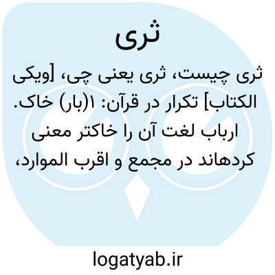 خاک. ارباب لغت آن را خاک‏تر معنی کرده‏اند در مجمع و اقرب الموارد، خاک مرطوب گفته‏اند و غیر آن معنی نیز آمده است ولی از نهج البلاغه روشن می‏شودکه معنی آن مطلق خاک است برای خداست آنچه در اسمان و زمین و آنچه در میان آن دو و آمچه در نزدیک خاک است. در نهج البلاغه آمده «وَ یَطُولُ فِی الثَّری حُلُولُها» خطبه 223 «وَدُفْنِتَ تَحْتَ الثَّری» نامه 41 «وَاَکَلَتْهُمُ الْجَنادِلُ وَالثَّری» خطبه 224. پیداست که مراد از آنها مطلق خاک است. «ثری فقط یک دفعه در قرآن آمده است.