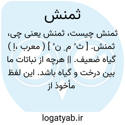 ثمنش. [ ث ُ م ِ ن ُ ] ( معرب،اِ ) گیاه ضعیف. || هرچه از نباتات ما بین درخت و گیاه باشد. این لفظ مأخوذ از یونانی است.