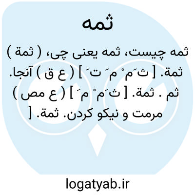 ( ثمة ) ثمة. [ ث َم ْ م َ ت َ ] ( ع ق ) آنجا. ثم.