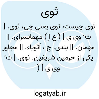 ثوی. [ ث َ وی ی ] ( ع اِ ) مهمانسرای. || مهمان. || بندی. ج، اَثویاء. || مجاور یکی از حرمین شریفین.